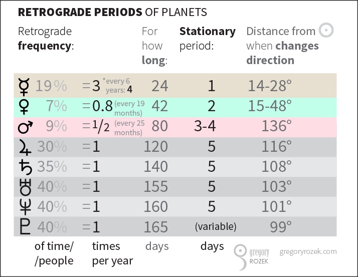 Here are the retrograde planets in their signs, and the dates of their retrograde motion:
